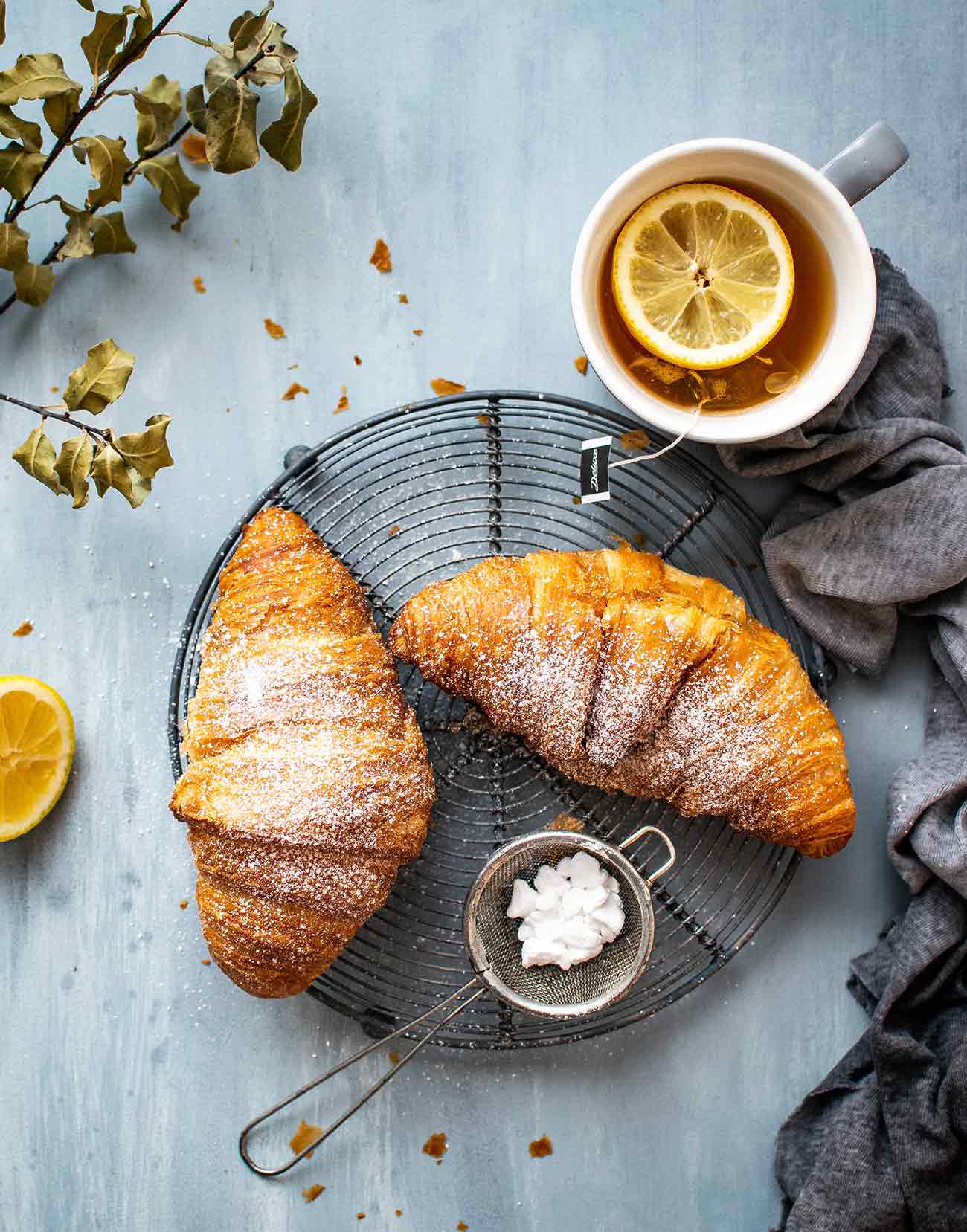 Tasty croissant and tea for perfect breakfast